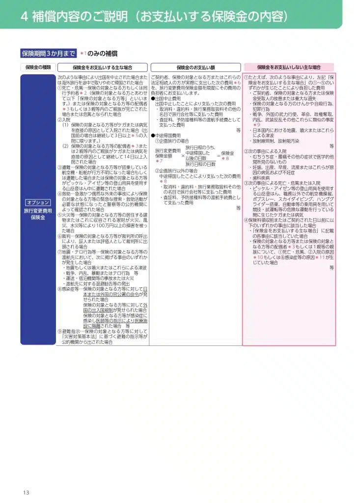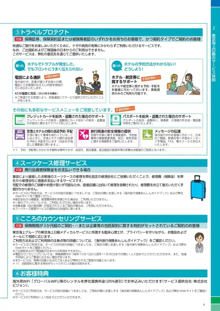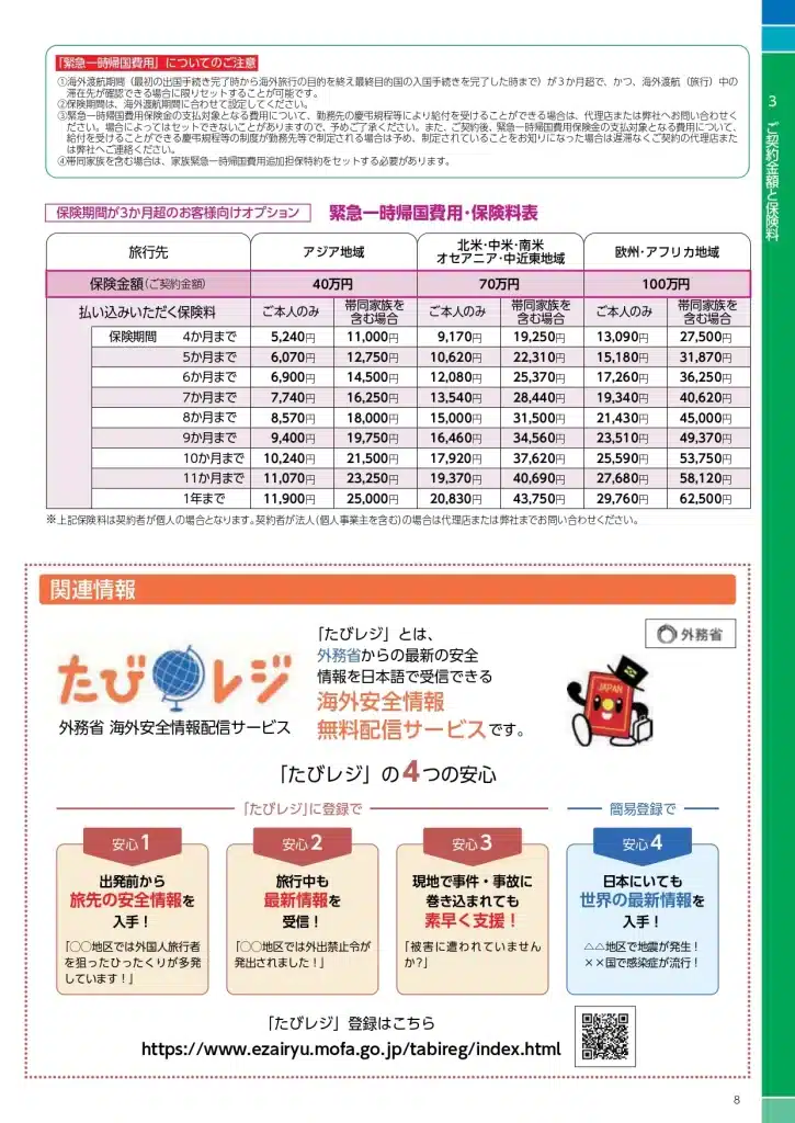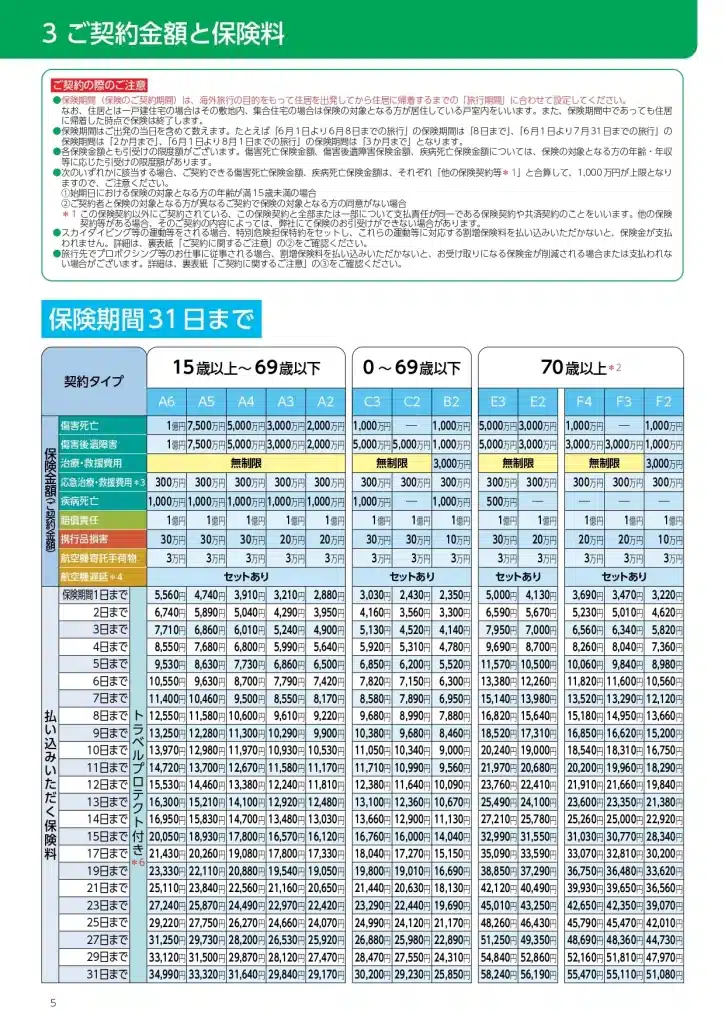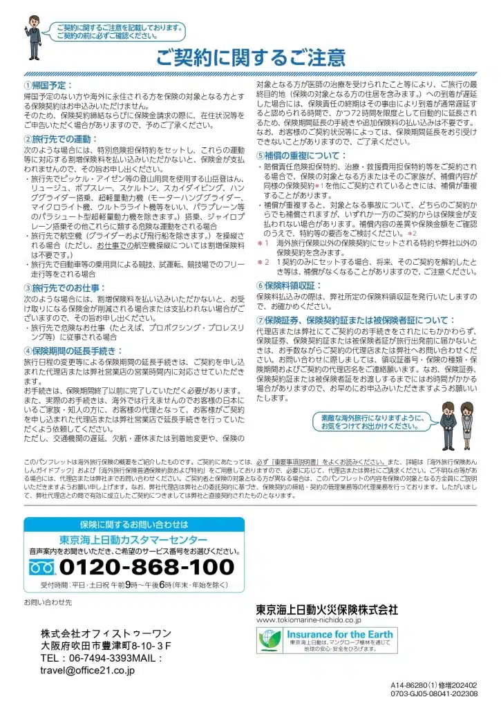 表示されているパンフレットは日本から海外への海外旅行保険のパンフレットです。